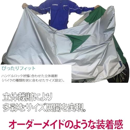 ヤマハ発動機のバイクカバー「Fタイプ 2Lサイズ」は、立体裁断によるぴったりとしたフィット感と防炎素材の採用が特長です。