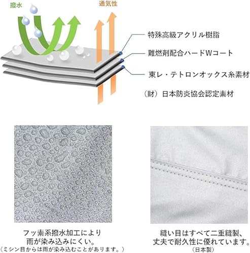 高い防炎性能と通気性は安全面・衛生面双方に配慮されているため、夜間の駐輪やマンションの共用スペース保管にも安心感があります。