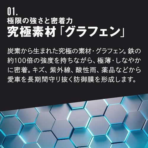 グラフェンコーティングは、炭素原子が六角形に結合した単層シートであるグラフェンの特性を活かした車用コーティング剤です。