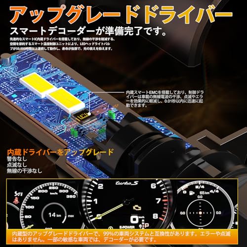 この製品は最先端の7035 LEDチップを搭載し、従来のハロゲンバルブに比べて最大8倍の明るさ(26000ルーメン)を実現しています。