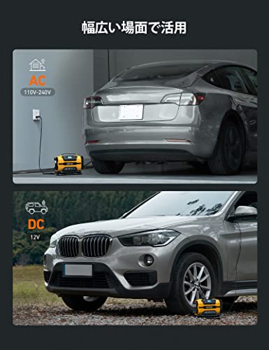 そこで頼りになるのが、AstroAI エアーコンプレッサーの特徴であるデュアル電源対応です。