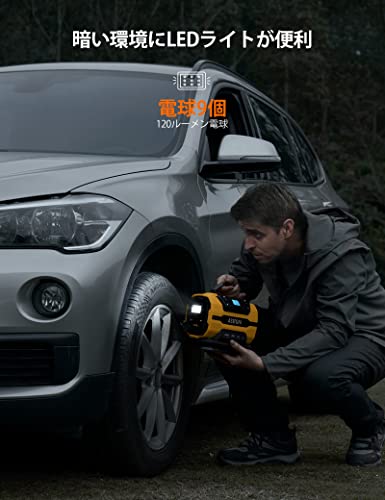 AstroAI エアーコンプレッサー 電動空気入れ 5 in 1 タイヤ・プール 自動車用 AC/DC給電 150 PSI 自動電源オフ メモリ機能 LEDライト五種類変換ノズル 仏式/米式/英式 全バルブ対応 バイク 自転車 エアマットレス 浮き輪 ボール パドリングプール 空気入れ 最後 画像