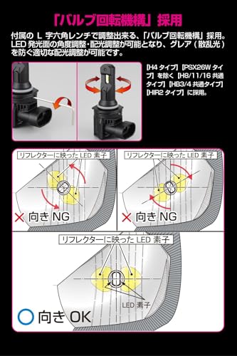 • 明るさ:合計4000ルーメン(2本セット時)で純正ハロゲンより明るい
