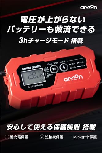 その点でエーモン(amon) バッテリーチャージャー4869は、逆接続保護機能を搭載し、安全面を格段に向上させています。