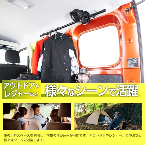 この製品はダイハツ・ハイゼットカーゴ/アトレー(S700V/S710V/S700W/S710W)専用に設計された左右2本セットのサイドバーで、車内の天井部分にしっかりと取り付けが可能です。