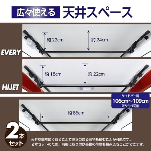 • 対応車種:ハイゼット、エブリイ向け(106~109cmの幅に適合)