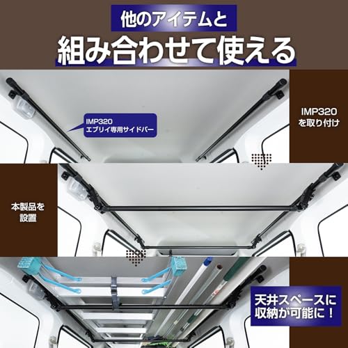 セイワ(SEIWA) ハンガーバー M サイズ 106〜109cm 2本セット (ハイゼット/エブリイ) IMP325 車内キャリアバー 車内収納 天井収納 車中泊 レジャー 釣りサーフィン スノーボード 別売サイドバー 品番:IMP320/IMP321と組み合わせ 【BURNOXシリーズ】 最後 画像