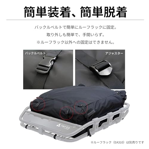 テルッツォ(Terzo)のルーフラックオプション350Lは、600Dオックスフォードポリエステル素材を採用し、防水性と耐久性を備えています。