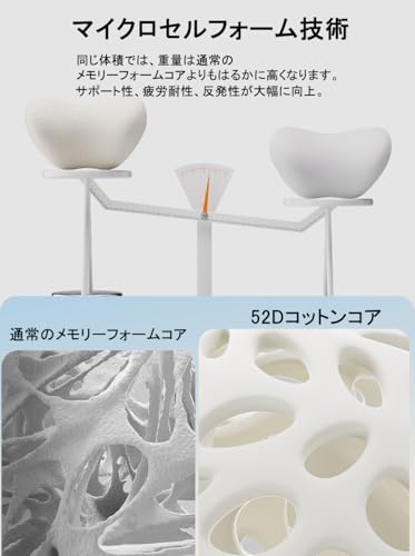この製品のもう一つのポイントは、ドイツ製の高品質メモリーフォームを内部に使用し、10000回の圧縮テストをクリアしている点です。