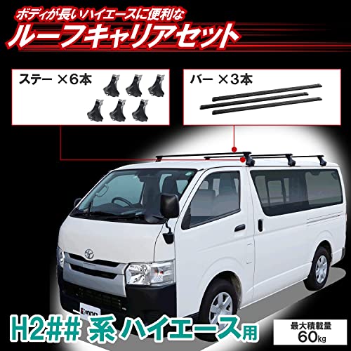 この製品は、車種別に設計されたフルセットで、標準ルーフのハイエース200系やレジアスエース200系に適合。