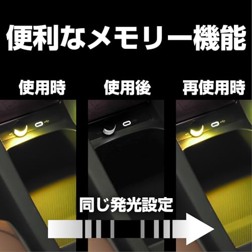 さらにタッチセンサー搭載で10色の自動切替や単色固定が手軽に操作でき、エンジンOFF時も設定を記憶するメモリー機能が安心感を高めています。
