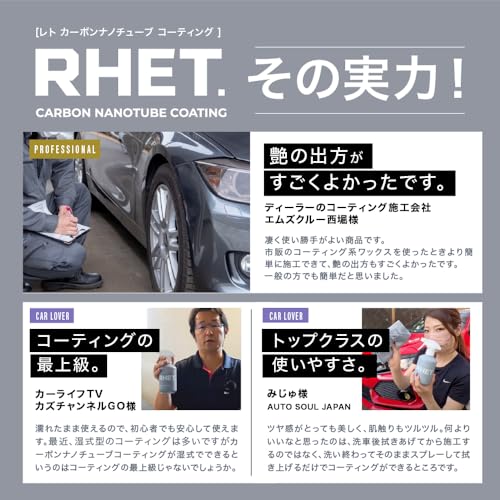 以上のように『RHET. 車コーティング 最強』は、次世代のカーボンナノチューブを活用した新しいタイプのカーコーティング剤として、艶・撥水・耐久性のバランスに優れた商品です。