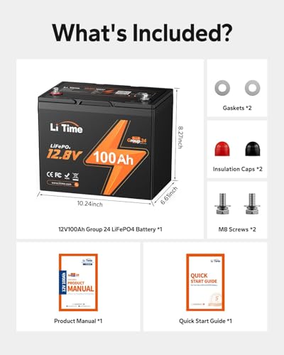LiTime 12V100Ahリン酸鉄リチウムイオンバッテリーは、小型・軽量かつ高エネルギー密度を誇り、Group24サイズ規格に適合した汎用的なリチウムイオンバッテリーです。