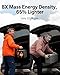 実際には1280Whの電力量を誇り、これは従来の鉛バッテリーの2倍以上の実用電力です。