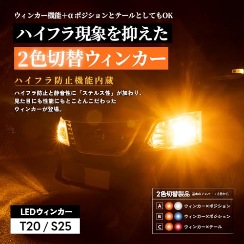 車のウインカーやポジションのLED化では、「HID屋 T20 ピンチ部違い LEDウインカー」の2色切替機能が多くのユーザーのニーズを満たします。