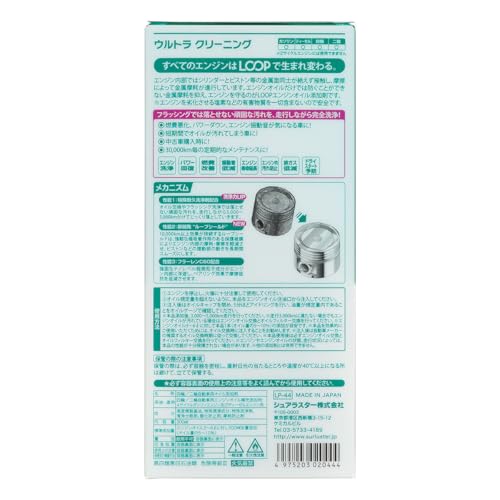 ループ ウルトラクリーニングは、定期的な使用によりエンジン内部の汚れを抑え、経年車の性能維持に役立つ添加剤です。