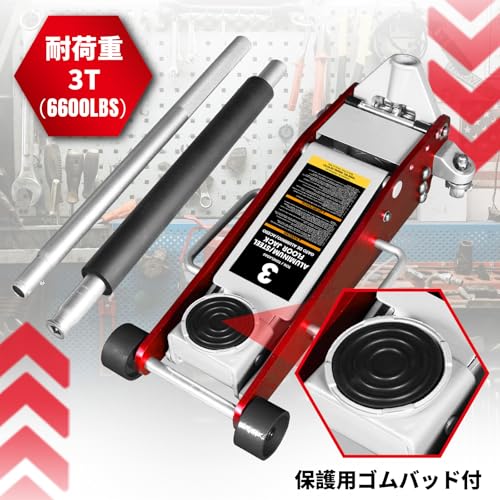 耐荷重3トンのBIG RED油圧フロアジャッキは、ローダウン車から大型車まで対応し、高耐久なアルミ+スチール製で長く安心して使えます。