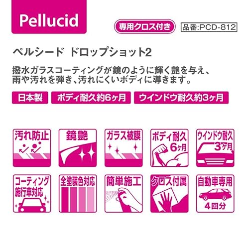ペルシード(Pellucid)のドロップショット2は、日本製の高品質な撥水コーティング剤で、鏡のような輝きと約6ヶ月の持続力が特長です。
