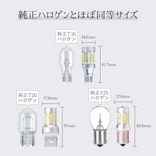 純正のS25シングル形状のバックランプとサイズがほぼ同じ(全長約49.8mm、全幅約17.8mm)ため、多くの国産車や輸入車に簡単に取り付けられます。