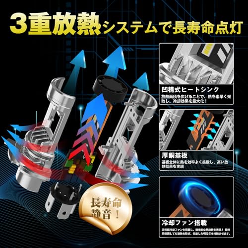Perrace H4 LEDヘッドライトは、高性能な冷却ファンを内蔵した設計により、従来のLEDヘッドライトよりもはるかに長寿命で安定した光を実現しています。